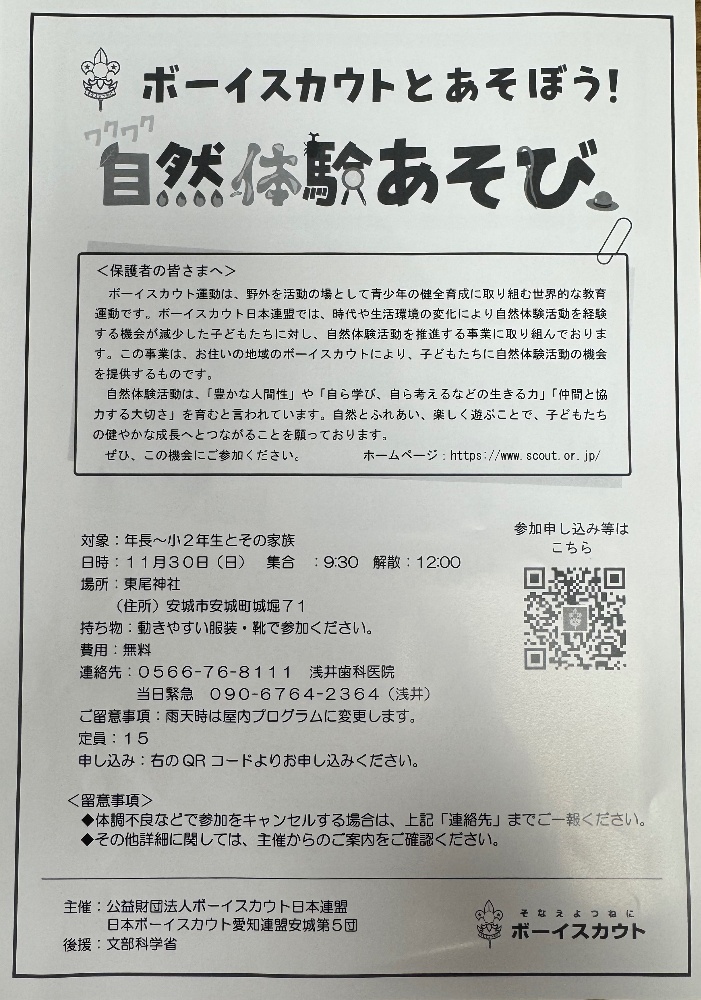 | 加盟員数 | ビーバー:3名 カブ:11名 ボーイ:12名 ベンチャー:6名 指導者・団委員:59名 |